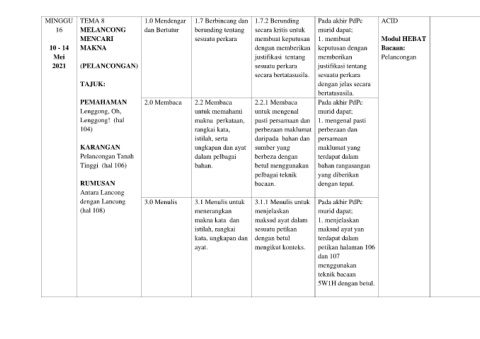 16 MELANCONG dan Bertutur berunding tentang secara kritis untuk murid dapat;