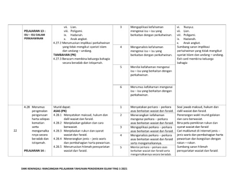 SMK KENINGAU: RANCANGAN PELAJARAN TAHUNAN PENDIDIKAN ISLAM TING 5 2021