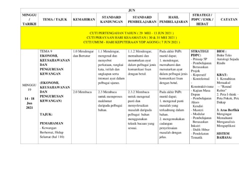 TEMA 9 1.0 Mendengar 1.1 Mendengar, 1.1.2 Mendengar, Pada akhir PdPc STRATEGI BBM :