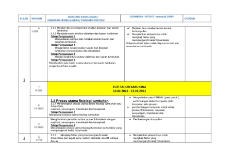 15-19/02 respirasi, penyerapan, translokasi dan transpirasi. ● pembentangan kumpulan untuk setiap