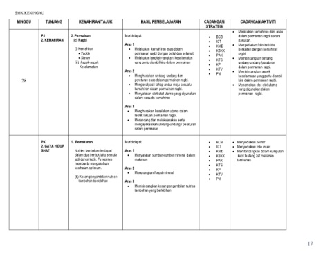 MINGGU TUNJANG KEMAHIRAN/TAJUK HASIL PEMBELAJARAN CADANGAN/ CADANGAN AKTIVITI