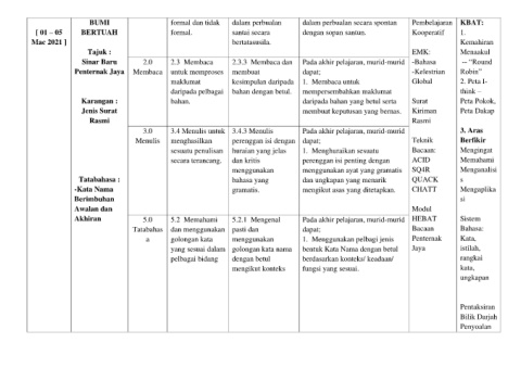 BUMI formal dan tidak dalam perbualan dalam perbualan secara spontan Pembelajaran KBAT:
