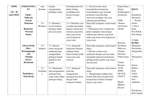 5.0 5.2 Memahami 5.2.2 Mengenal Pada akhir pelajaran, murid-murid ACID Bahasa: