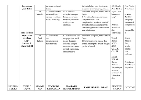 Lagi” Bahasa mengapresiasi moden dan puisi 1.Menghayati gaya bahasa dan Bacaan : Bahasa: