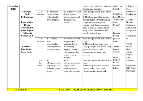 MINGGU 34 CUTI UMUM – HARI KEBANGSAAN 31/08/2021 (SELASA)