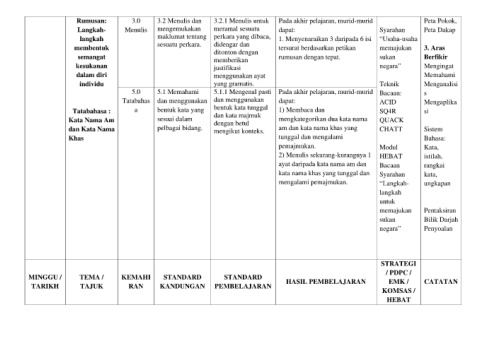 Rumusan: 3.0 3.2 Menulis dan 3.2.1 Menulis untuk Pada akhir pelajaran, murid-murid Peta Pokok,