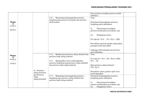 Minggu 9.3.1 Membezakan peristiwa saling eksklusif dan Nota: