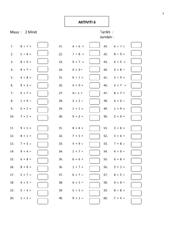 1. 8 + 7 = 21. 4 + 6 = 41. 6 + 7 =