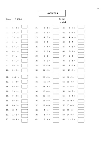 9. 9 - 1 = 29. 10 - 3 = 49. 5 - 5 =