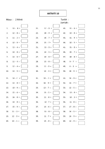 20. 10 - 1 = 40. 15 - 8 = 60. 12 - 9 =
