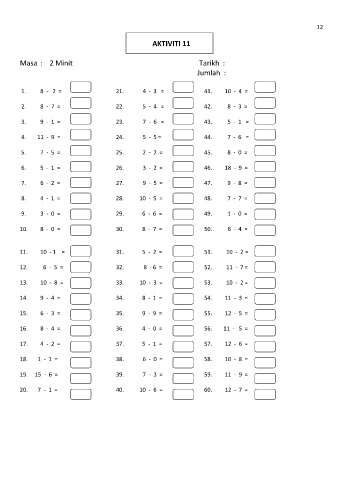 15. 6 - 3 = 35. 9 - 9 = 55. 12 - 5 =