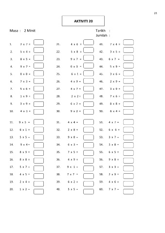 13. 5 x 5 = 33. 9 x 8 = 53. 3 x 7 =