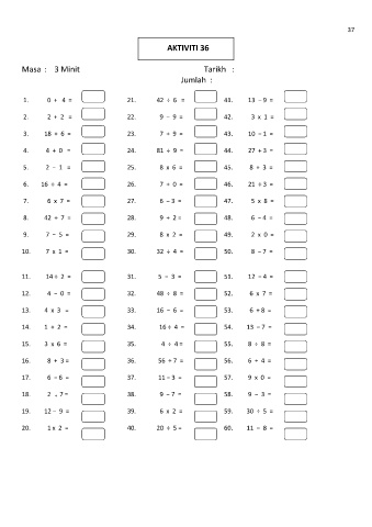 19. 12 − 9 = 39. 6 x 2 = 59. 30 ÷ 5 =