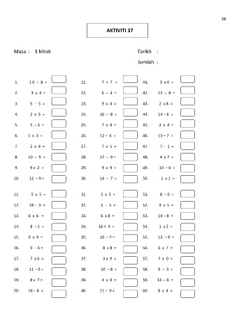 19. 8 x 7 = 39. 4 x 9 = 59. 13 − 8 =
