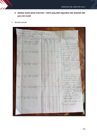KOMPILASI PBL VERSI PKP JILID 2 6. Gambar semua jenis instrumen / rubrik yang telah digunakan dan disemak oleh guru dan murid Senarai semak 193