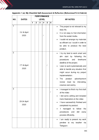 Appendix 1 (a): My Checklist Self-Assessment & Reflection (Muhammad Fa’id Hakimi)