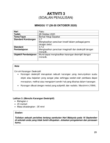 Pembelajaran Menghasilkan penulisan imaginatif dan deskriptif dengan