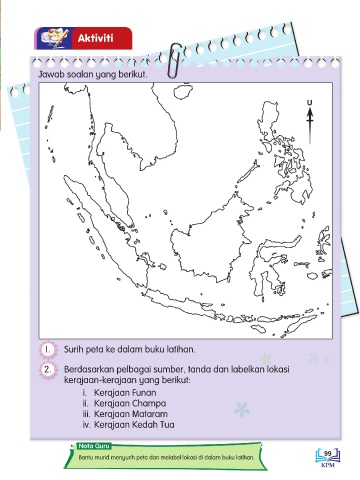 Bantu murid menyurih peta dan melabel lokasi di dalam buku latihan.