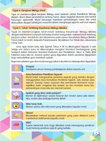 Lima tajuk dalam buku teks Sejarah Tahun 4 SK ini dibahagikan kepada 11 unit.