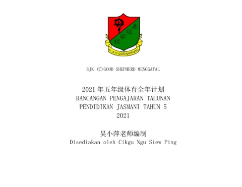 SJK (C)GOOD SHEPHERD MENGGATAL 2021 年五年级体育全年计划 RANCANGAN PENGAJARAN TAHUNAN PENDIDIKAN JASMANI TAHUN 5 2021 吴小萍老师编制 Disediakan oleh Cikgu Ngu Siew Ping