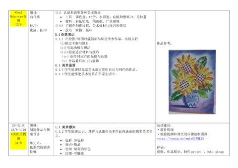 4.1.2 学生能够把美术连贯在日常生活中。