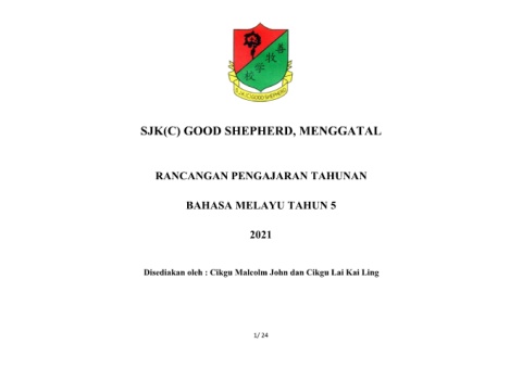 SJK(C) GOOD SHEPHERD, MENGGATAL RANCANGAN PENGAJARAN TAHUNAN BAHASA MELAYU TAHUN 5 2021 Disediakan oleh : Cikgu Malcolm John dan Cikgu Lai Kai Ling 1/ 24
