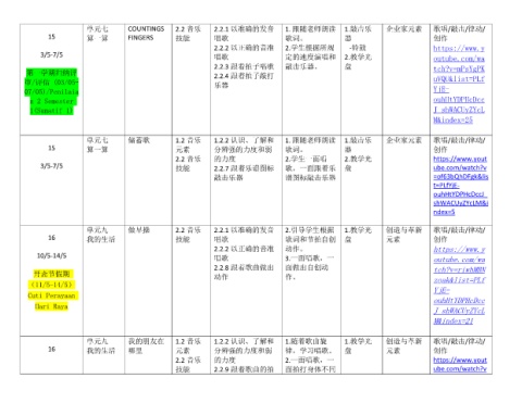 单元九 我的朋友在 1.2 音乐 1.2.2 认识、了解和 1.随着歌曲旋 1.教学光 创造与革新 歌唱/敲击/律动/