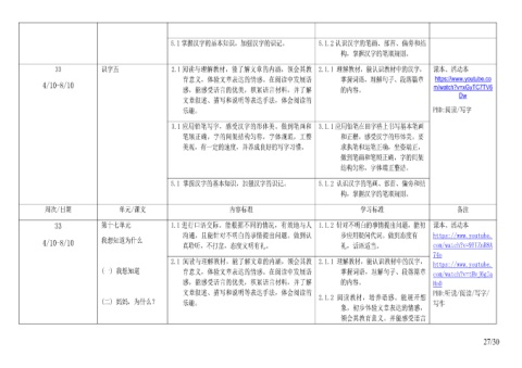 2.1 阅读与理解教材,能了解文章的内涵,领会其教 2.1.1 理解教材,能认识教材中的汉字, https://www.youtube.