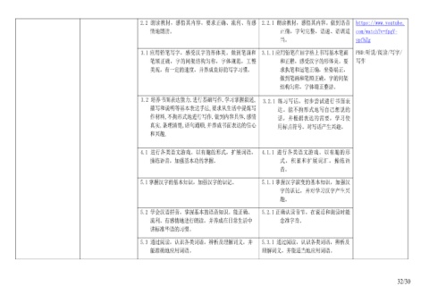 3.1 应用铅笔写字,感受汉字的形体美。做到笔画和 3.1.1 应用铅笔在田字格上书写基本笔画 PBD:听说/阅读/写字/
