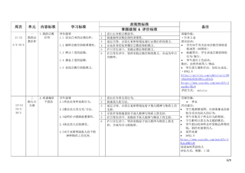 一 1.我的宗教 学生能够 1 说出自身的宗教信仰。 道德价值: