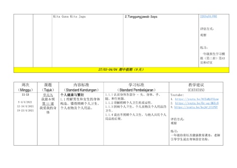 5-4/4/2021 第 11 课 构造、懂得照顾个人卫生、 1.1.2 理解照顾个人卫生的重要性。 2. https://youtu.be/6y-aq-H6Yc8