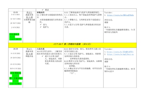 22-25 单元九 家庭成员 5.1.1 了解家庭成员与监护人所扮演的角色。 Youtube: