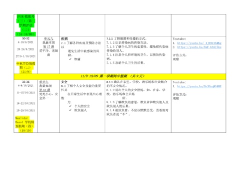 30-32 单元九 疾病 7.1.1 了解细菌和传播的方式。 Youtube: