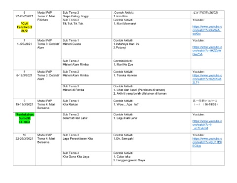 10 Modul PdP Sub Tema 3 Contoh Aktiviti: Youtube: