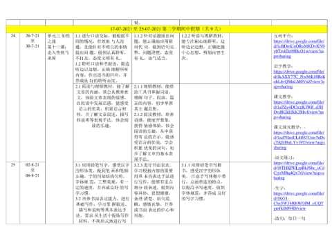 24 26-7-21 单元三 知性 1.1 进行口语交际。能根据不 1.1.2 针对话题提出问 1.2.2 听读与理解教材, 互动平台: