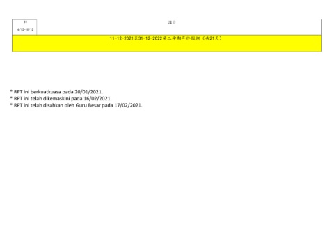 24 温习 6/12-10/12 11-12-2021至31-12-2022第二学期年终假期(共21天) * RPT ini berkuatkuasa pada 20/01/2021. * RPT ini telah dikemaskini pada 16/02/2021. * RPT ini telah disahkan oleh Guru Besar pada 17/02/2021.