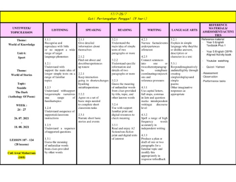 Unit 6: range of target paragraphs or more description or - Year 5 English CEFR-