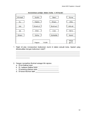 1. Rajah di atas menunjukkan kedudukan murid di dalam sebuah kelas. Apakah yang