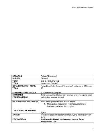 STANDARD 1.2.2 Mengaplikasi latitud dan longitud untuk mengenal pasti