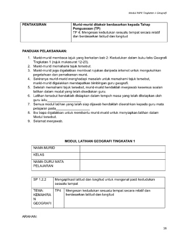 MODUL LATIHAN GEOGRAFI TINGKATAN 1