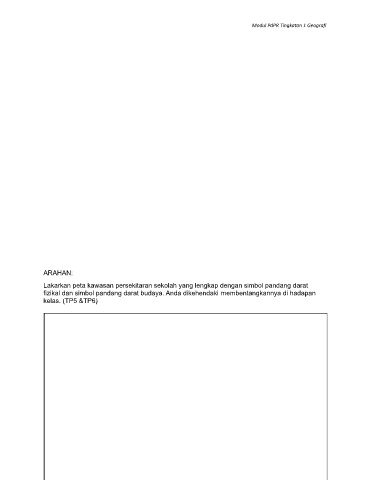 Modul PdPR Tingkatan 1 Geografi ARAHAN: Lakarkan peta kawasan persekitaran sekolah yang lengkap dengan simbol pandang darat fizikal dan simbol pandang darat budaya. Anda dikehendaki membentangkannya di hadapan kelas. (TP5 &TP6) 32