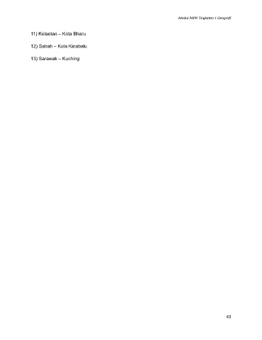 Modul PdPR Tingkatan 1 Geografi 11) Kelantan – Kota Bharu 12) Sabah – Kota Kinabalu 13) Sarawak – Kuching 43
