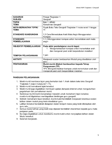 1. Murid-murid membaca tajuk yang berkaitan bab 1: Arah dalam buku teks Geografi