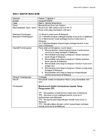 TP1 : Menyatakan empat bentuk muka bumi di Malaysia