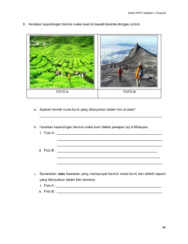 8. Huraikan kepentingan bentuk muka bumi di bawah beserta dengan contoh.