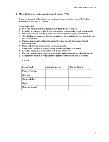 Soalan tugasan: Murid perlu mencari arah dan bearing sudutan tempat tertentu di