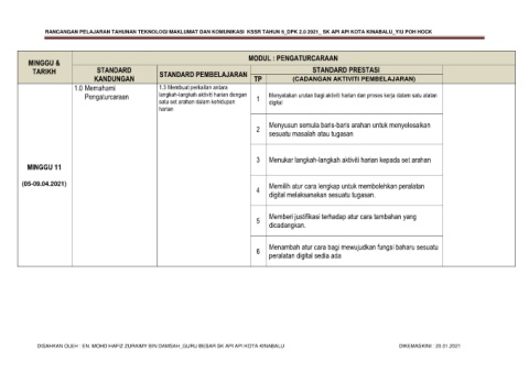 RANCANGAN PELAJARAN TAHUNAN TEKNOLOGI MAKLUMAT DAN KOMUNIKASI KSSR TAHUN 6_DPK 2.0 2021_ SK API API KOTA KINABALU_YIU POH HOCK