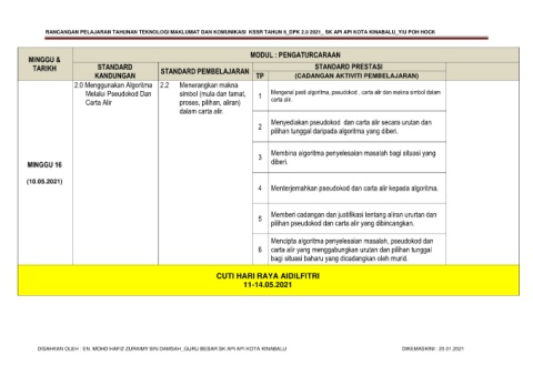 RANCANGAN PELAJARAN TAHUNAN TEKNOLOGI MAKLUMAT DAN KOMUNIKASI KSSR TAHUN 6_DPK 2.0 2021_ SK API API KOTA KINABALU_YIU POH HOCK
