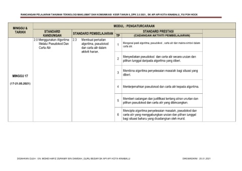 RANCANGAN PELAJARAN TAHUNAN TEKNOLOGI MAKLUMAT DAN KOMUNIKASI KSSR TAHUN 6_DPK 2.0 2021_ SK API API KOTA KINABALU_YIU POH HOCK
