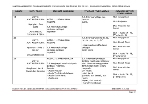 RANCANGAN PELAJARAN TAHUNAN PENDIDIKAN KESENIAN MUZIK KSSR TAHUN 6_DPK 2.0 2021_ SK API API KOTA KINABALU_MOHD AZRUL HISHAM
